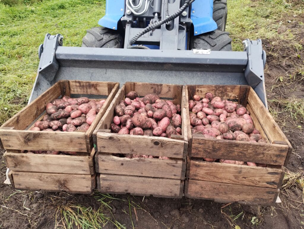 Vi satte en större mängd potatis, mest för att få testa de gamla redskapen som följde med i köpet av gården: traktordragen kupare och upptagare, automatisk potatissorterare. En annan markplätt blev ett litet solrosfält som gav färg till byn under augusti. Men annars har odlingarna varit mer frustration än glädje. Det var ett förfärligt snigelår i år. Mördarsnigel, åkersnigel, vinbärssnäcka och trädgårdssnäcka, samt en irriterande pytteliten svart snigel som jag inte vet vad den heter – allihop oerhört glupska. Dessutom kvickrot, råttor, sork, knäpparlarver, kålfjäril, ärtvecklare, rapsbagge, hare, rådjur och en katt som inte ser skillnad på en toalett och en rad nysådda morötter, så förstår ni att det är ett smärre mirakel att vi fick några grönsaker alls i år. Det blev mycket kålrot och pumpa men ganska magert av allt annat.
